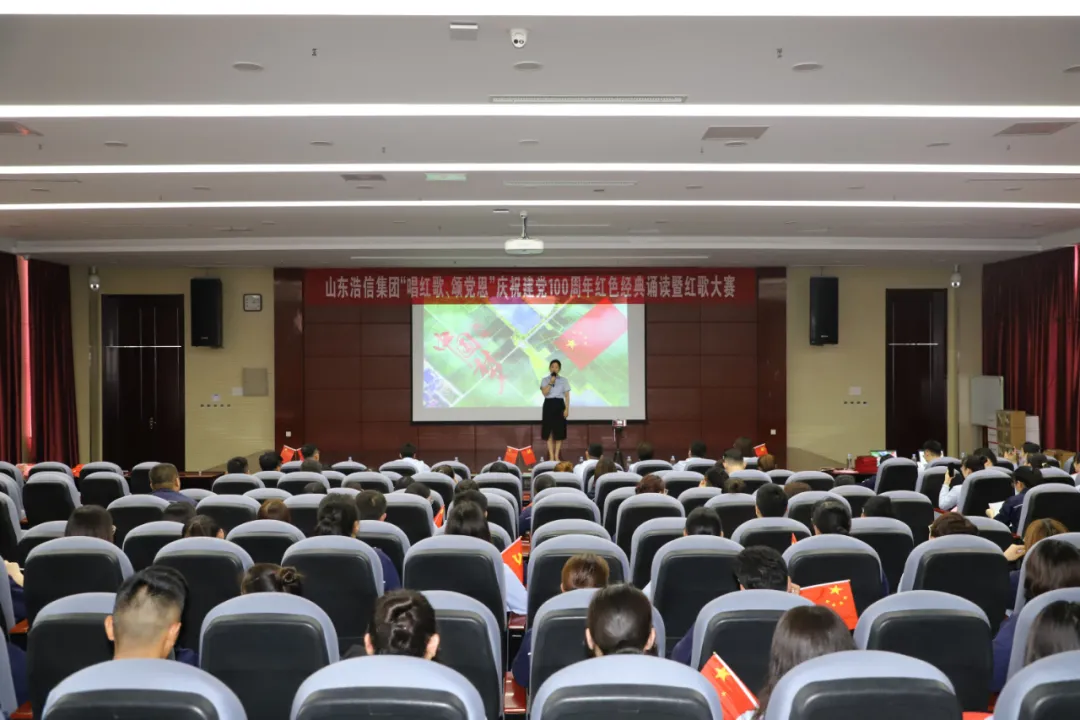 6月24日,山東浩信集團黨群部組織在公司總部隆重舉行‘唱紅歌·頌黨恩’慶祝建黨100周年紅色經典誦讀暨紅歌大賽決賽,謳歌黨的百年奮斗歷程,凝聚新時代奮進力量,奮力沖刺百億產銷目標。