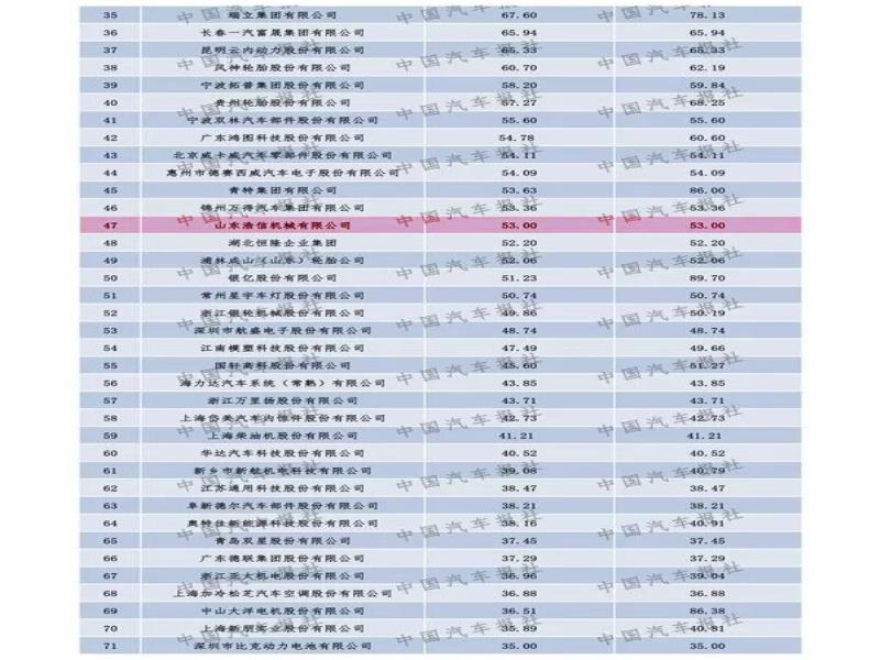 山東浩信再次榮登中國汽車零部件企業(yè)百強榜